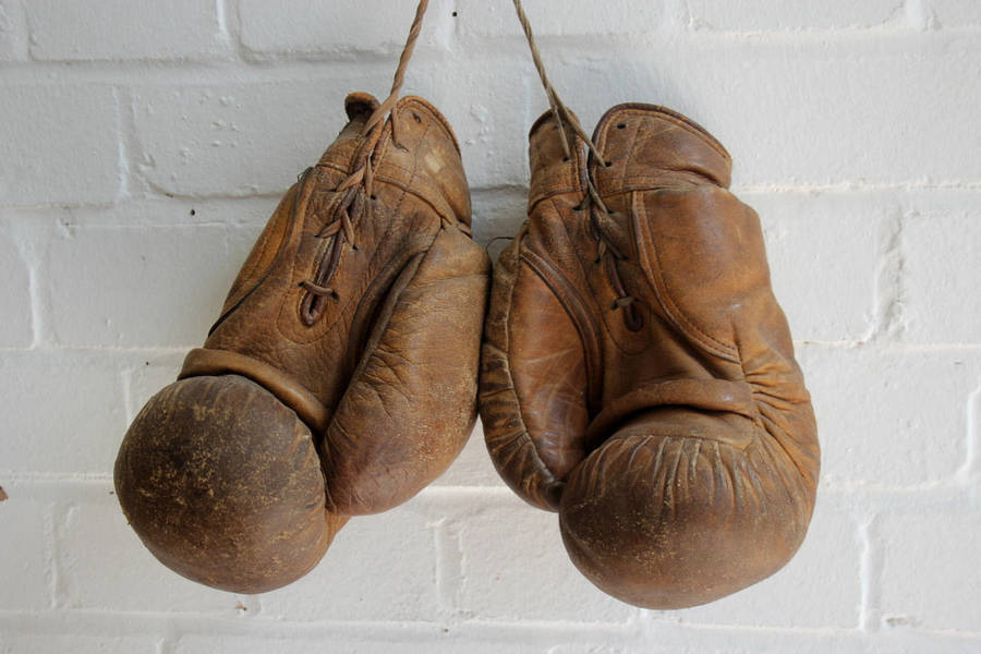 ( inside its simple packaging sits a pair of boxing gloves. )